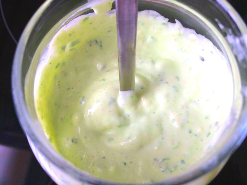 - Vuelve a meter la batidora y bate hasta que esté todo bien integrado. Para aligerar la salsa añade un chorrito de leche y bate hasta que esté a tu gusto.